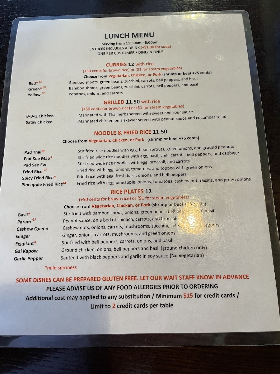 - Curries: Perfect for lunch, indulge in their gluten-free Red Curry, a mild yet flavorful amalgamation of bamboo shoots, green beans, zucchini, and more, all harmonized with fragrant basil. For those seeking a slightly sweeter profile, the Yellow Curry offers comforting potatoes and carrots for a delightful treat.